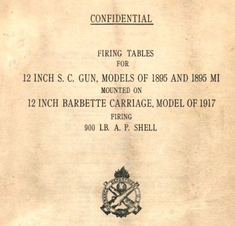 12 INCH S.C. GUN, MODELS OF 1895 AND 1895 MI MOUNTED ON 12 INCH BARBETTE CARRIAGE, MODEL OF 1917 FIRING 900 LB. A.P. SHELL